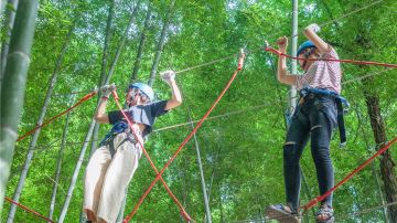 行程中所列景点/场馆首道大门票华谊兄弟电影小镇全天门票+石燕湖门票+游10项目(玻璃桥+游船+森林漫步+丛林穿越+周公城+天空之境+攀爬乐园+沙滩亲子乐园+粉红沙滩+迎宾广场表演)。