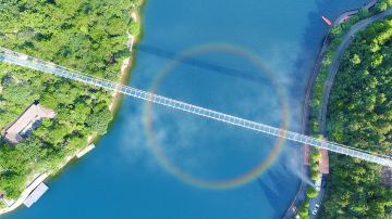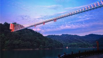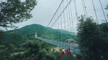 石燕湖的天空玻璃廊桥横跨石燕湖,连接着南海猴岛,玻璃廊桥全长300米,高150米,透过玻璃,脚下是碧波荡漾的湖水,倒少了份惊险,多了份浪漫唯美。
