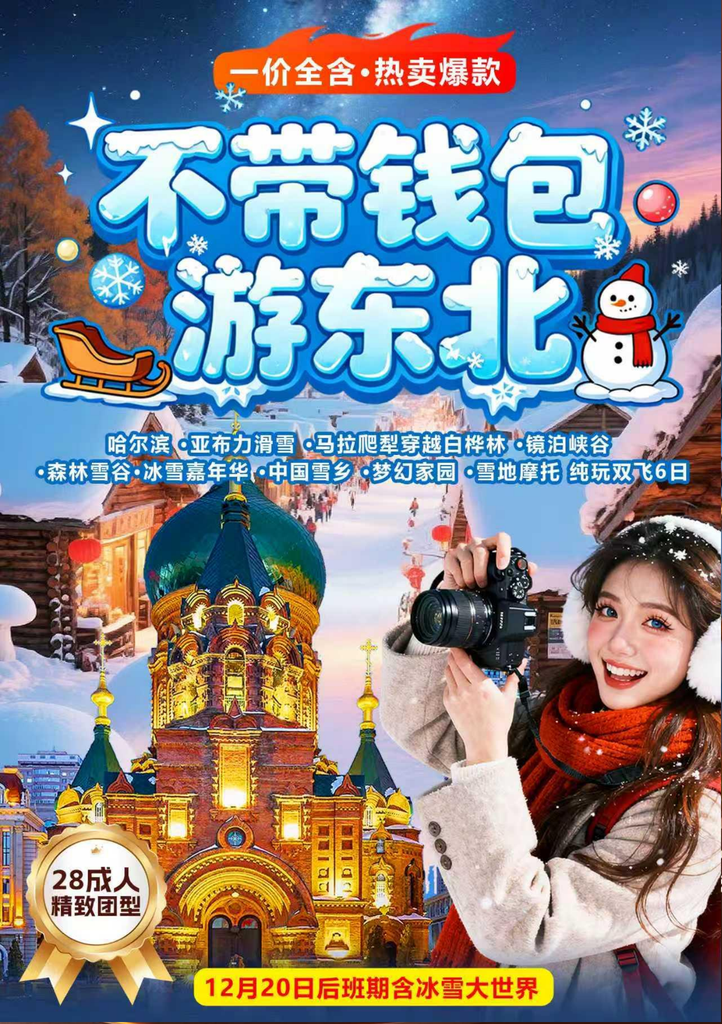 雪地摩托、冰雪大世界6日游